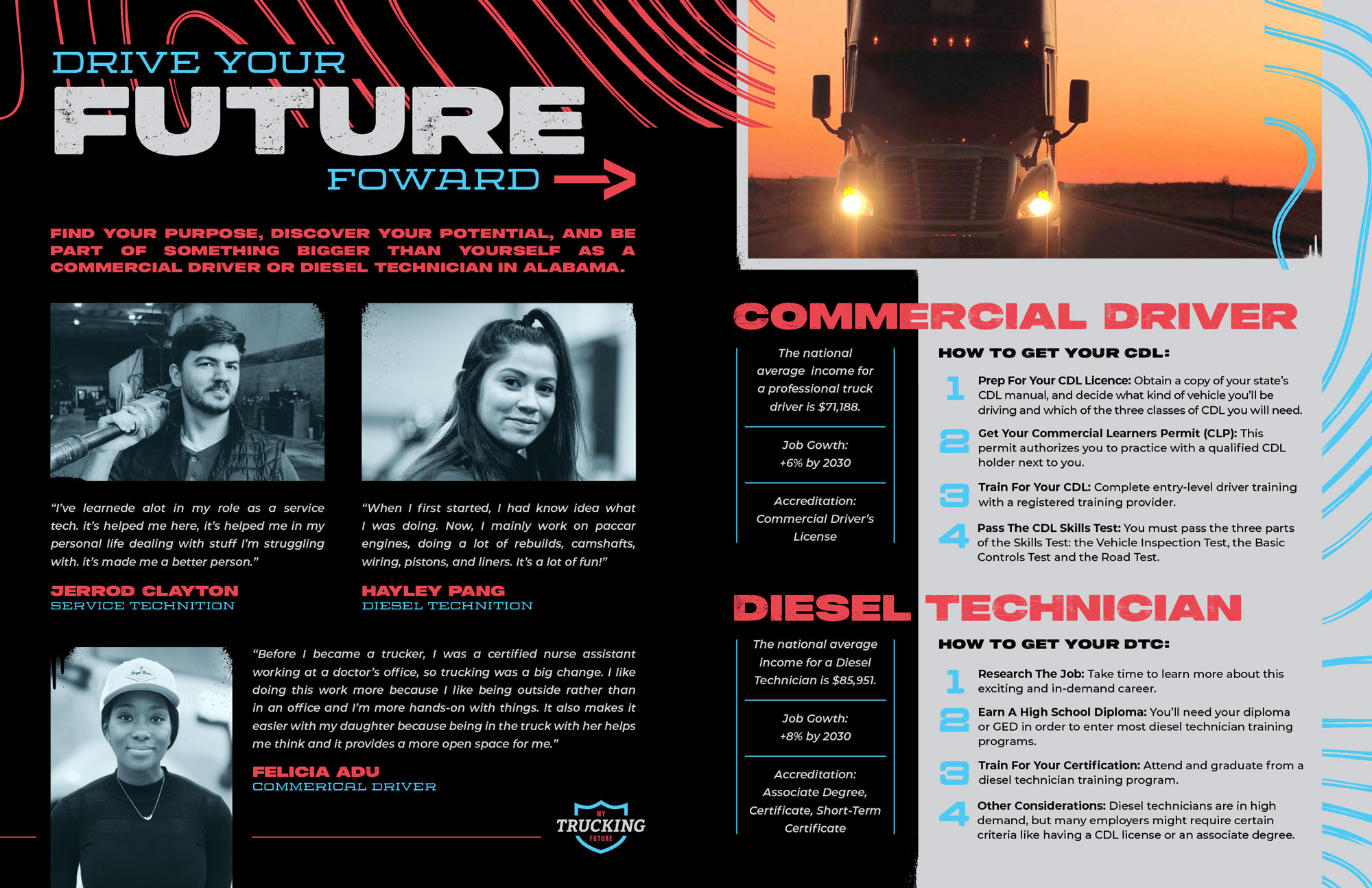 This workforce development campaign for the Alabama Trucking Association is focused around a dedicated website build that tells the story’s of real Alabama truckers and gives information on career opportunities in the industry.