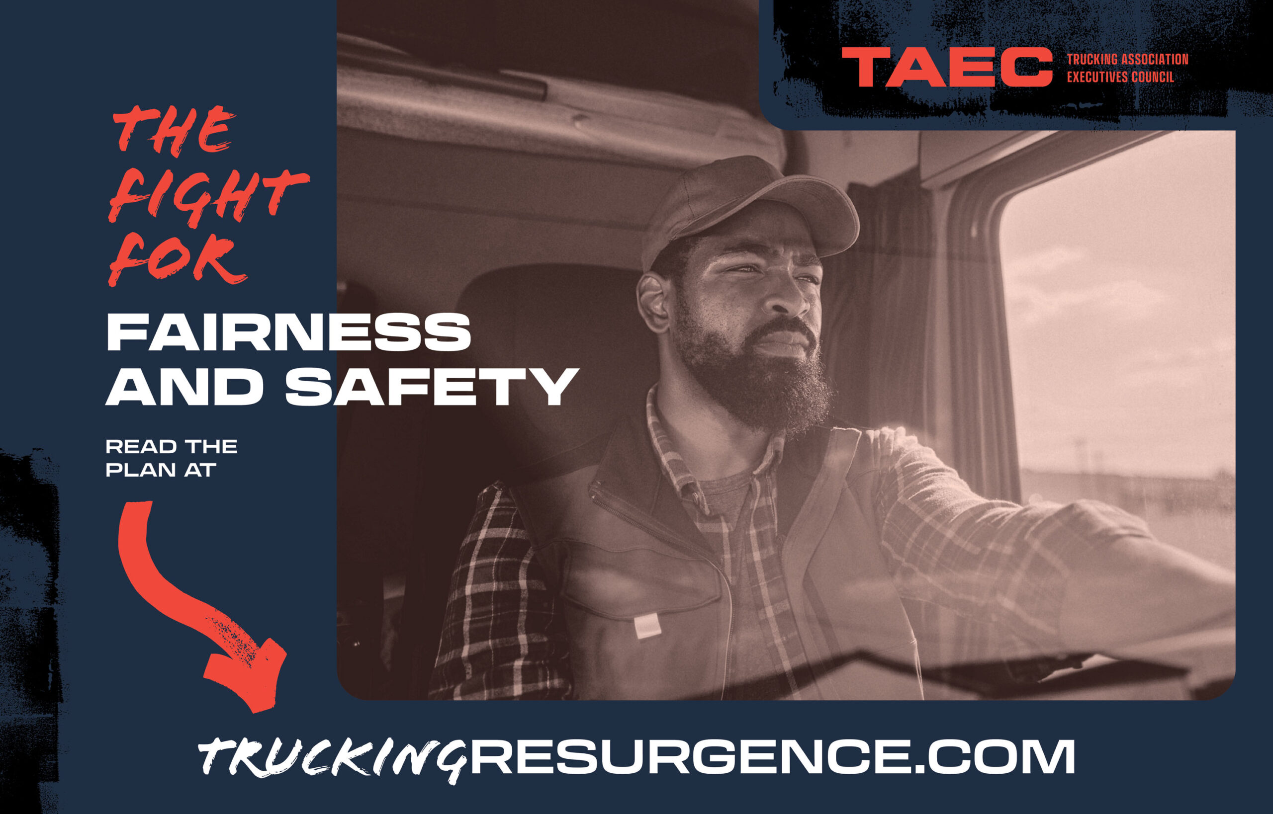 The Trucking Association Executive Council (TAEC) is comprised of state trucking association and industry association executives from around the United States with the mission of promoting the trucking industry and improving the associations and organizations established to serve the trucking industry. TruckingResurgence.com is the online home for a recent TAEC developed action plan designed to eliminate and root out the “bad actors” in trucking who are committing fraud, ignoring safety regulations, and competing for business with unfair advantages. The goal of the website is to host the action plan and inform regulators, policy makers, and the general public on the thorough and detailed plan to restore fairness and improve highway safety.
